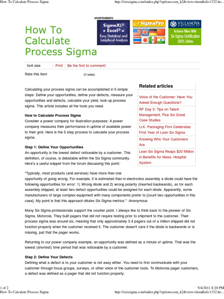 See full list on mathsisfun.com Sometimes our data is only a sampleof the whole population. To calculate the standard deviation of those numbers: Defining what a defect is to your customer is not easy either. We can still estimatethe standard deviation. You don't have to eat the whole animal to know that the meat is tough. this is the essential idea of sampling. Let us explain it step by step. See full list on mathsisfun.com Sigma levels are based on the normal distribution curve. An opportunity is the lowest defect noticeable by a customer. You might also like to read the more advanced topic partial sums. But when we take a sample, we lose some accuracy. Mostly because it is easier and cheaper.